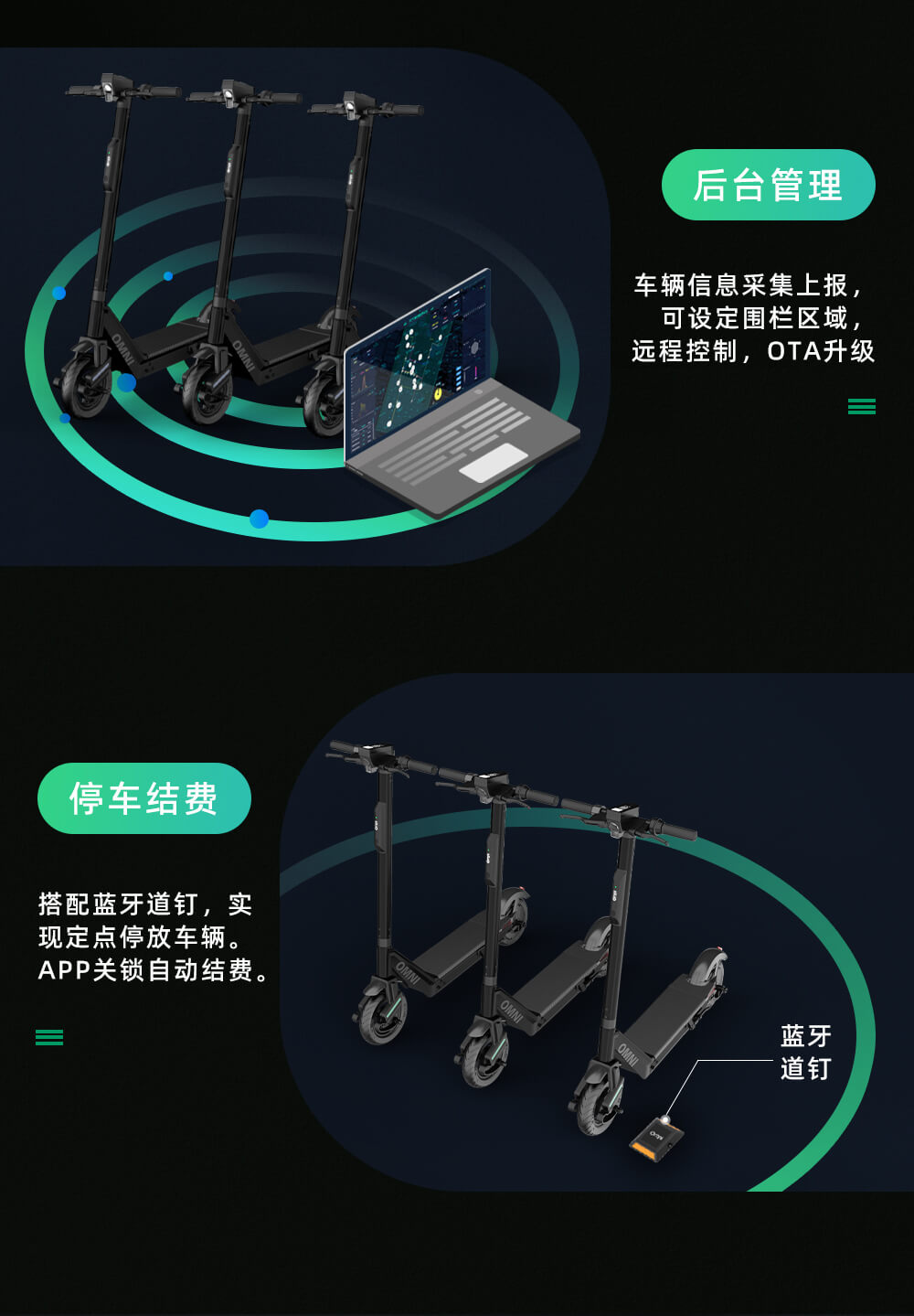 歐米智能共享滑板車半嵌入式IOT 雙頻GPS+慣導(dǎo)技術(shù) L1/L5 GNSS雙頻全球衛(wèi)星定位技術(shù),有效提高接收機(jī)位的定位精準(zhǔn)度,抑制路徑效應(yīng)的影響,并能很好的提高抗干擾能力,4G通訊技術(shù),開鎖,上傳數(shù)據(jù)更快更精準(zhǔn),結(jié)費時自動鎖車,環(huán)保塑膠材料,外表磨砂質(zhì)感,更耐磨,耐沖擊,耐腐蝕,耐高溫,延長產(chǎn)品使用壽命,歐米智能共享滑板車解決方案在全球的校園,城市以及景區(qū)都擁有大量成功的案例